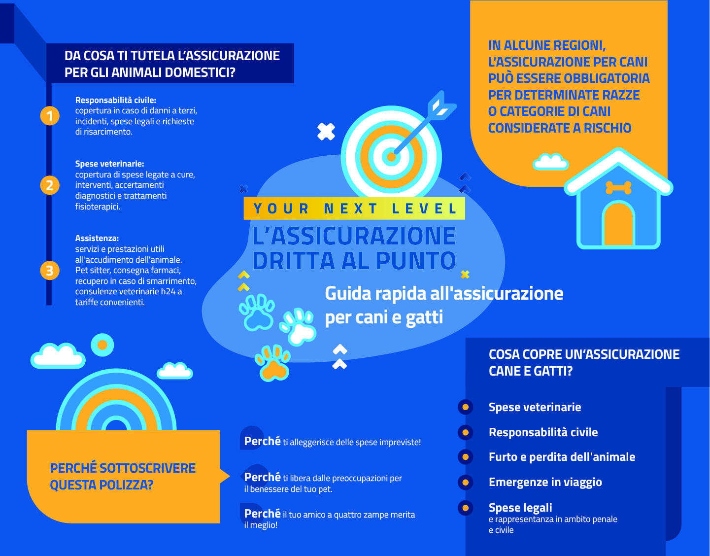Che cos’è, e soprattutto, cosa copre l’assicurazione per un gatto o per un cane? L’assicurazione per animali domestici è una tipologia di polizza stipulata per il proprio amico a quattro zampe. Si tratta di una protezione che può essere fondamentale durante la sua vita in quanto progettata per aiutare a sostenere le spese veterinarie, per proporre strutture sanitarie che offrano per le migliori cure possibili in caso di interventi chirurgici o terapie e per proteggerti qualora recasse danni ad altre persone. Vediamo, allora, quattro buoni motivi per stipulare oggi stesso un’assicurazione per il tuo animale:
